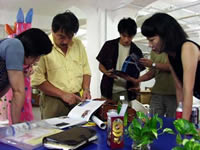 向こうでとった様々な写真をスライド上映しながら韓国のアートの状況、普通の人の生活、アーティスト同士の交流、またマケットを使っての自分の作品の解説と内容は盛りだくさんでした。