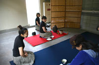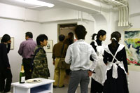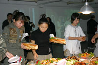 10年目だから1〜10にちなんだ10コのパーティーという安直なネタに始まり、廊下が長いから30mカフェ(綿密リサーチ済み本気仕様メイドさん付き)、ギャラリーでは一日に6人で個展リレー(各搬入・搬出・オープニングパーティー付き)、7色の座布団を敷いたお茶会は前夜に練習、手つきに悩んだあげく「セクシー茶会(きゃははは)」と言いながらセクシーとはほど遠い仕草でお茶をたてる(練習の甲斐あって本番ではしおらしく?出来た)、締めは10種類の具でオープンサンド。子供も大人も、作家も社長さんもみんなでバゲットにかぶりつく(食べきれません)