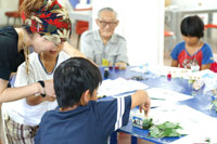 色を探している時、オシロイバナの種の中の白色の粉を発見した子。
