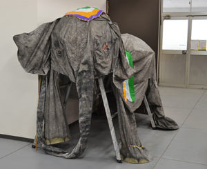 別館には、ゾウの「諏訪子」が帰って来ていました。昨日はお疲れ様でした。パレードで街の中を、まるで生きているように歩き続けていた諏訪子さん。今日は、心なしか満足気な様子。部屋の片隅で、まるで、僕たちを見守っているかのように佇んでいる、ゾウの諏訪子でした。