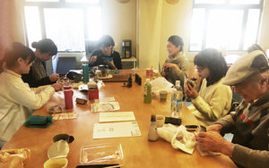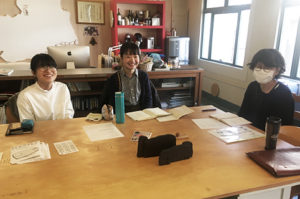 本館では、WAKOのお二人と高橋さんがミーティングをしていました。来年の「大新年会」のチラシ制作の打ち合わせですね。どんなチラシができるのかなあ。