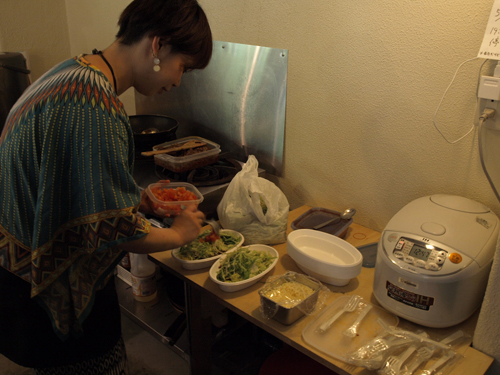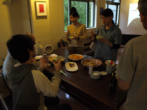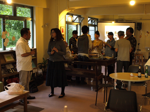 トークも終わり、みなさん持ち寄りで様々な食べ物飲み物がテーブルに。