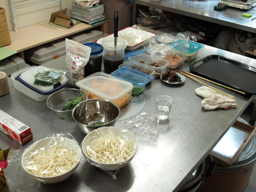 厨房に入ったトモさん、えらい勢いでわらび餅練ってます。なるほど〜