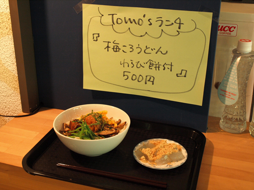 本日のTomo'sランチは、「梅ころうどん わらび餅付」 500円です。