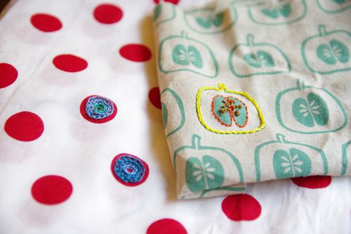 2.布の元柄を利用して、それを生かし刺しゅうで仕上げる