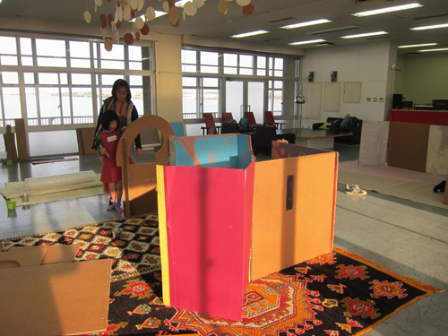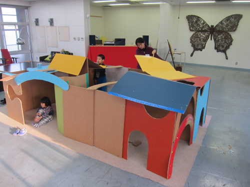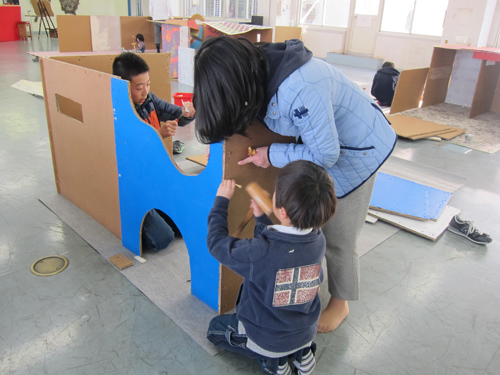 まずは講師のマスダマキコさんによる家の建て方の実演。