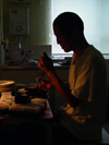 「ゾウノシッポ」と名付けられた30分程度の彼のほぼ処女作のスライドショーを観た後にトークショーは始った。スライドショーというあまり写真家にとって一般的ではない作品提示の方法は、彼の写真に対する懐疑の中から生まれた。彼の言葉を借りるなら「写真の持つある種の嘘つきやすさ性が、僕の中ではそのまま像を定着させるのではなく、いくつかの流れの中で見せていくことの方が、その時の自分の『本当』が見える気がする」、「スライドショーが、終わるとまた何もない壁に戻る。それは、過ぎ去っていく時間の流れの中に身をおいている日常に近い気がする」ということなのだけれど、つまり、写真は当然ながら現実そのものではなく、あくまである側面を切り取った「写真」なのだということをこれらの言葉は示唆している。