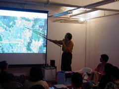 この日のリビングルームでは「平安京 音の宇宙」の著者、中川真さんを囲んでたっぷりと話しを聴きました。五行思想とは?時を告げる都の音とは?市井の音はどんな風に聴かれていたのか?そして、当時最先端の五行思想を基にした平安京を支えるコスモロジーを表す音とは?ということで、この本を書く時の調査で録音した平安時代に作られた11の寺院の梵鐘を実際に東西南北の位置に置いたスピーカから再生してみました。鐘の音とともに時間の流れが緩くなるような、それになんだかちょっとガムランみたいな不思議な響きでした。しかしこれはたった11の鐘の音。当時はもっとあっただろうと予想されているそうですが、実際、中世につくられて現存している鐘だけでも32体あるんです。しかしほとんど国宝だそうで、なかなかその響きを聴く機会もありません。やっぱり、想像してみるしか無いんですけど、当時の人にとってはちょっとエキゾチックな空気が、鐘の音とともに漂ったのかもしれません。昔の事っていうのは斬新なもんだ、と考えさせられたリビングルームでした。