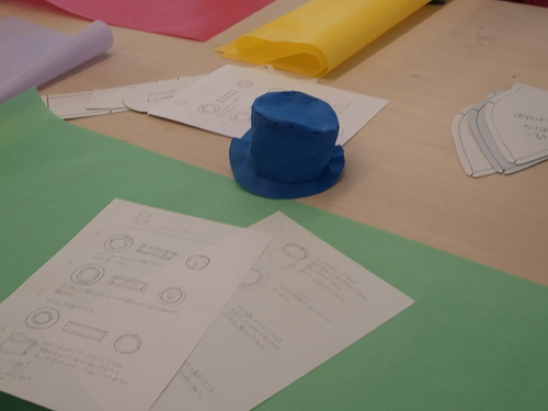 しょっぱなの講座でした。この緻密さと、いい感じのダメダメ感が絶妙な、ダンボールのスーパーカブです。トミーせんせいの乗ってきた黄色いスーパーカブを見ながら、講座で作りました。