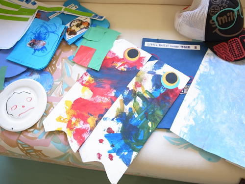 お絵描きに、工作、粘土細工にパズルと多種多様な作品です。