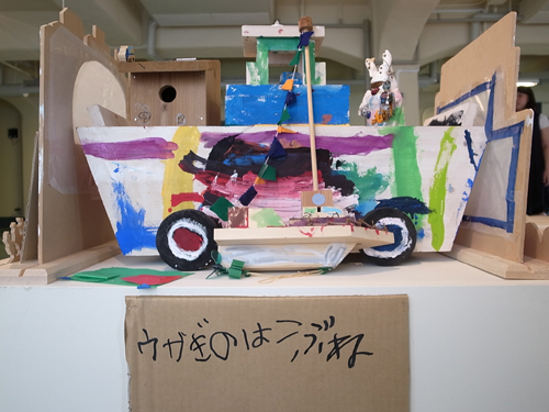 アート林間学校2013、最終日の講座「てんらんかいをつくろう!」は、参加者の作品を持ってきてもらって講師と相談して展覧会を作るという講座。