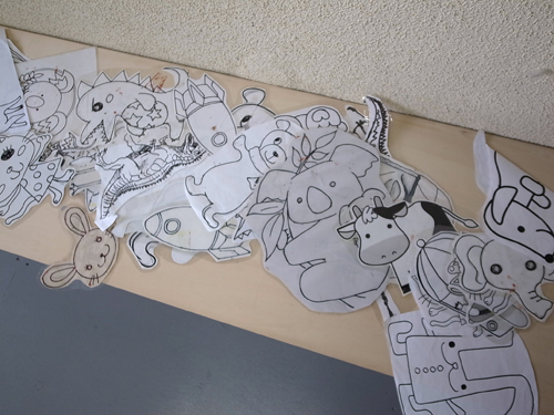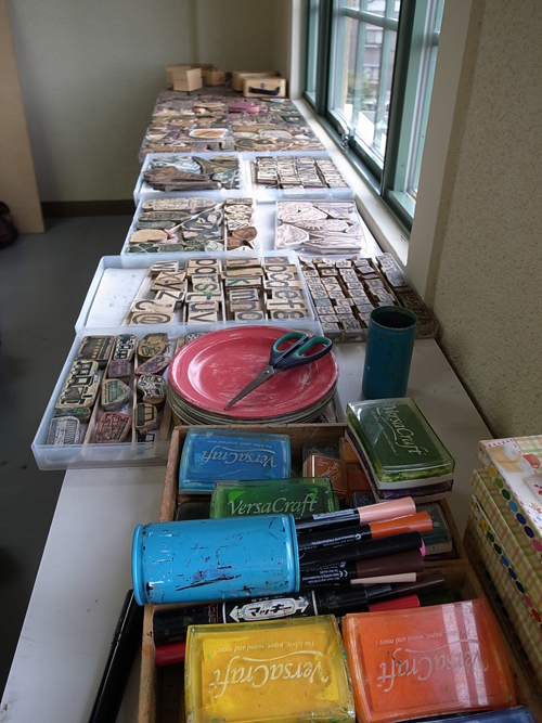 100個以上ある手作りハンコと、今回はお絵描用の下絵もたくさん揃っています。