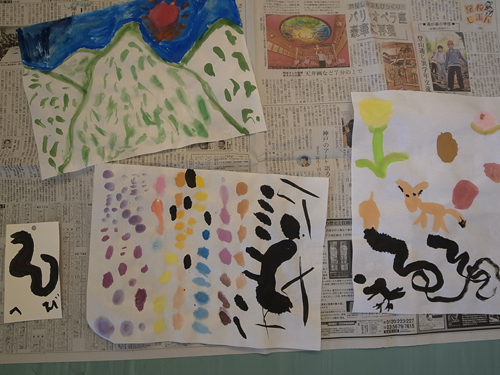作った色を、いろんな紙に書いてみます。